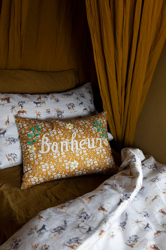 Linnen hoeslaken ledikant mustard - Lis Labels