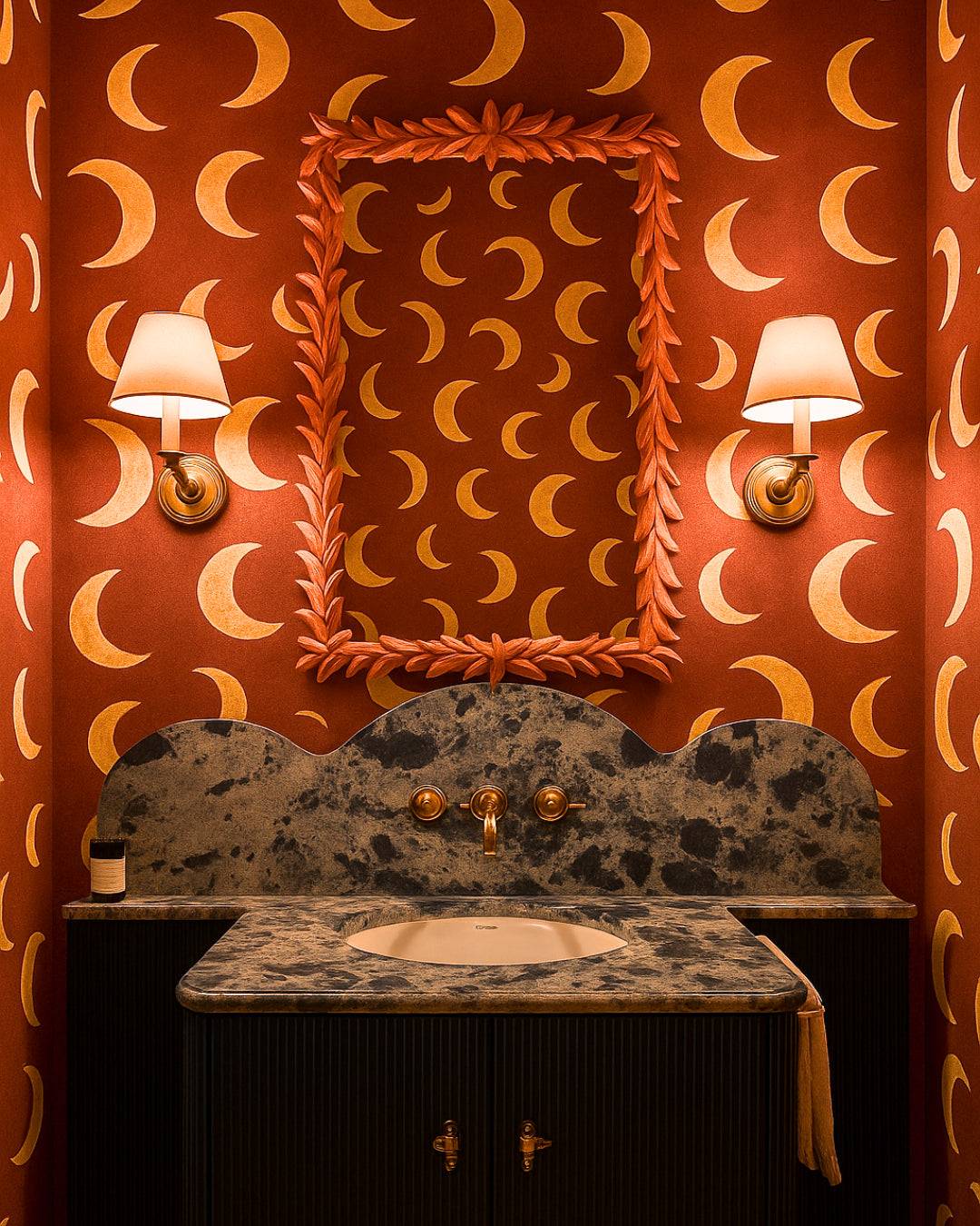 Creëer een warme en uitnodigende sfeer in de kinderkamer met het maanbehang van Meet Me at the Wall in bordeauxrood. De diepe, rijke tint, geïnspireerd door rabarber, brengt karakter en een vleugje warmte in elke ruimte. Perfect voor een unieke en rustgevende uitstraling.