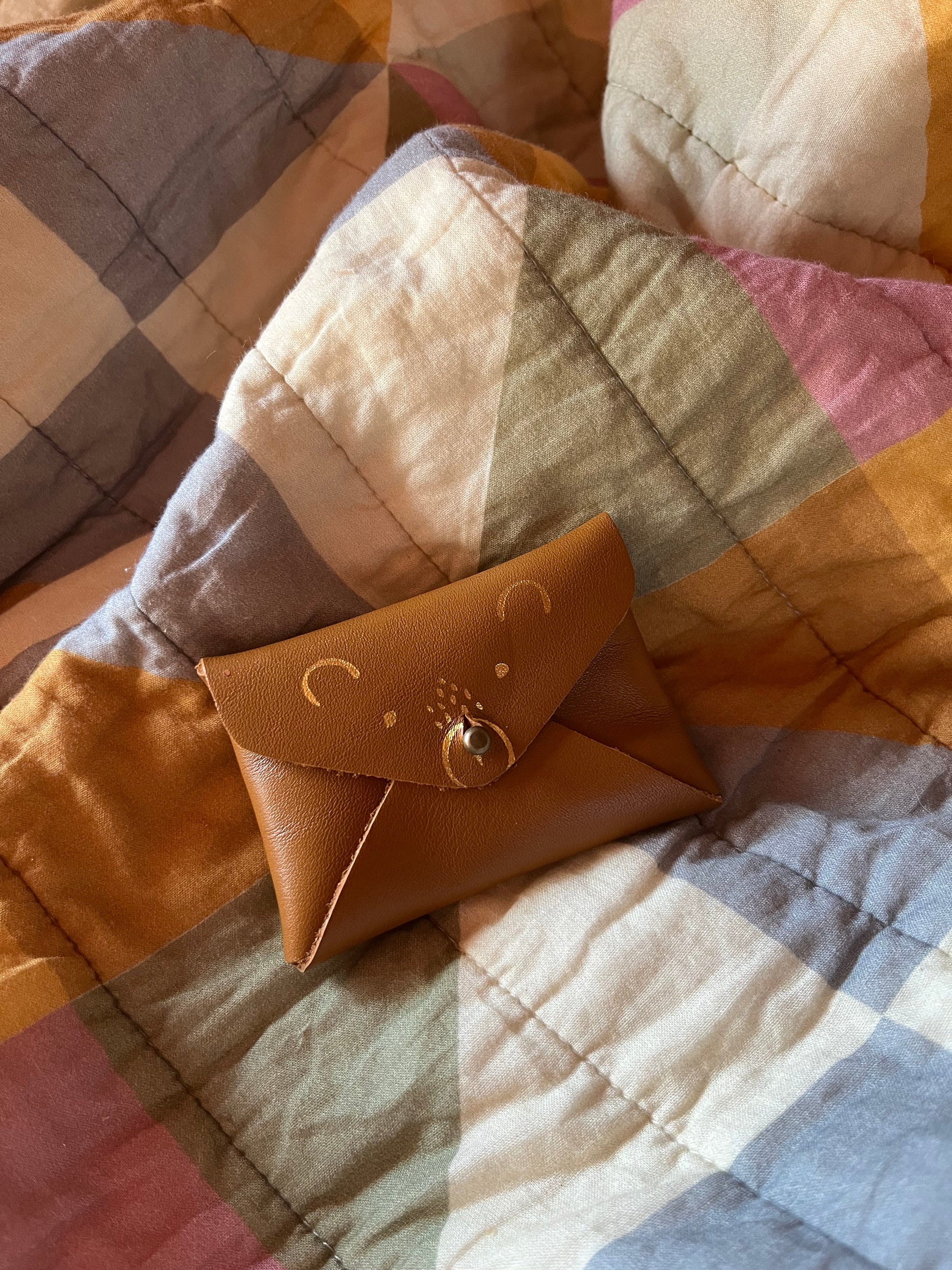 Deze kleine leren tas, is perfect om bv onze telefoon oordopjes, waardevolle sieraden en andere kleine schatten in op te bergen.