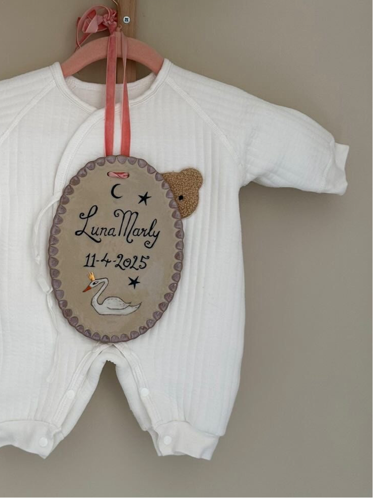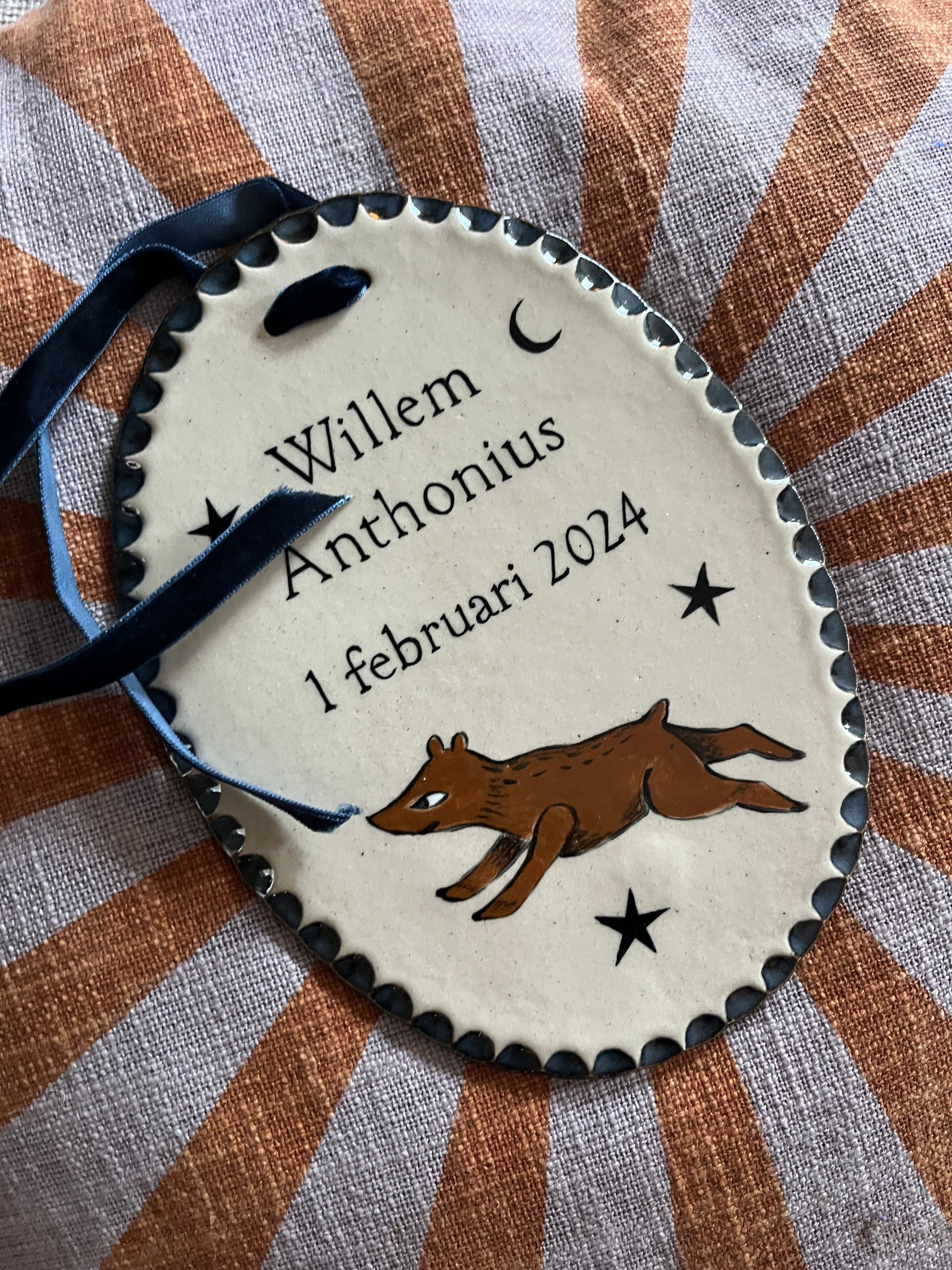 De geboortebordjes worden handgemaakt. Er dient rekening gehouden te worden met eigen interpretatie van de maker. Bijvoorbeeld plaatsing van de namen, sterren, maan en vormgeving van het dier.