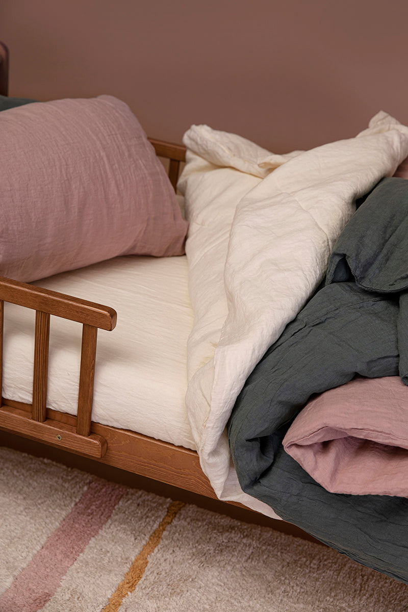 LIS LABELS linnen dekbedovertrekset in de kleur Off White is perfect voor jouw kleintje. Onze collectie linnen dekbedovertrekken bevat een dekbedovertrek en een kussensloop, is garment dyed en heeft een stijlvolle en tijdloze uitstraling. Onze linnen beddengoedcollectie voelt superzacht aan, is perfect voor warme dagen en koele nachten, en geeft de slaapkamer een speciale uitstraling. Combineer en match met onze andere effen kleuren en ontwerpen. Jij en je kleintje zullen er dol op zijn!